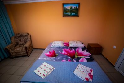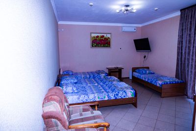 «Берегиня» предлагает вам разместится в 2-х, 3-х и 4-х местных номерах. Все номера со всеми удобствами — душ, туалет, кондиционер, телевизор, мини-холодильник.