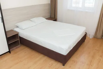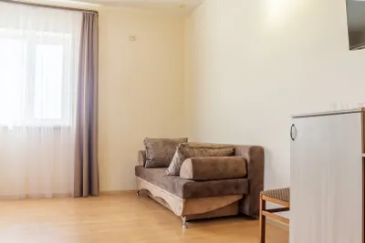 Удобное расположение, до моря совсем близко, 3 минуты ходьбы. Номер уютный, из 2х комнат, огромная светлая лоджия. Есть холодильник, кондиционер, посуда. Вода в душе бежит отлично, горячая. На первом этаже гостиницы есть кафе, можно заказать блюда на мангале. Приветливый персонал. Спасибо за гостеприимство!