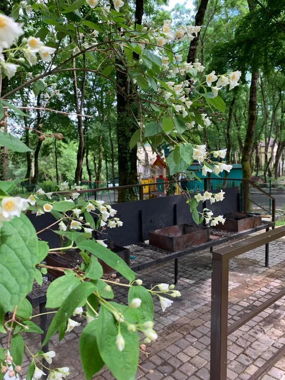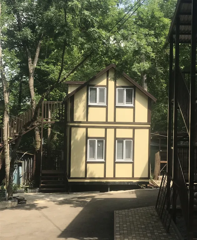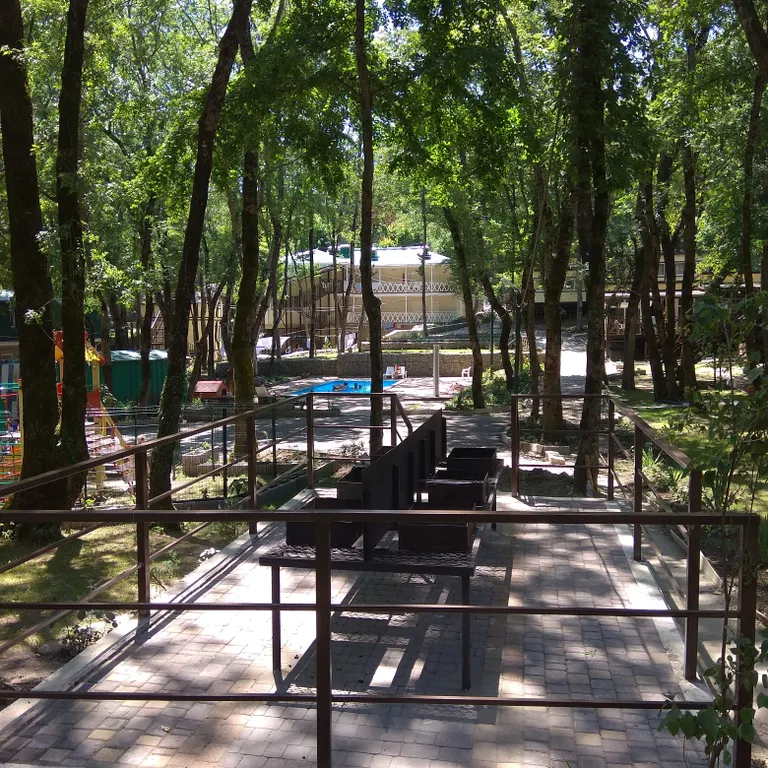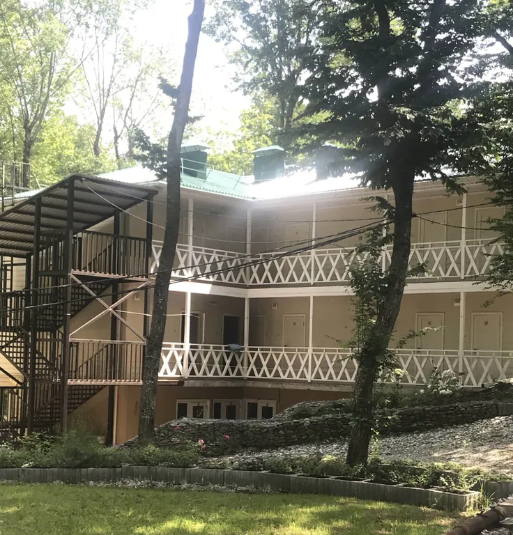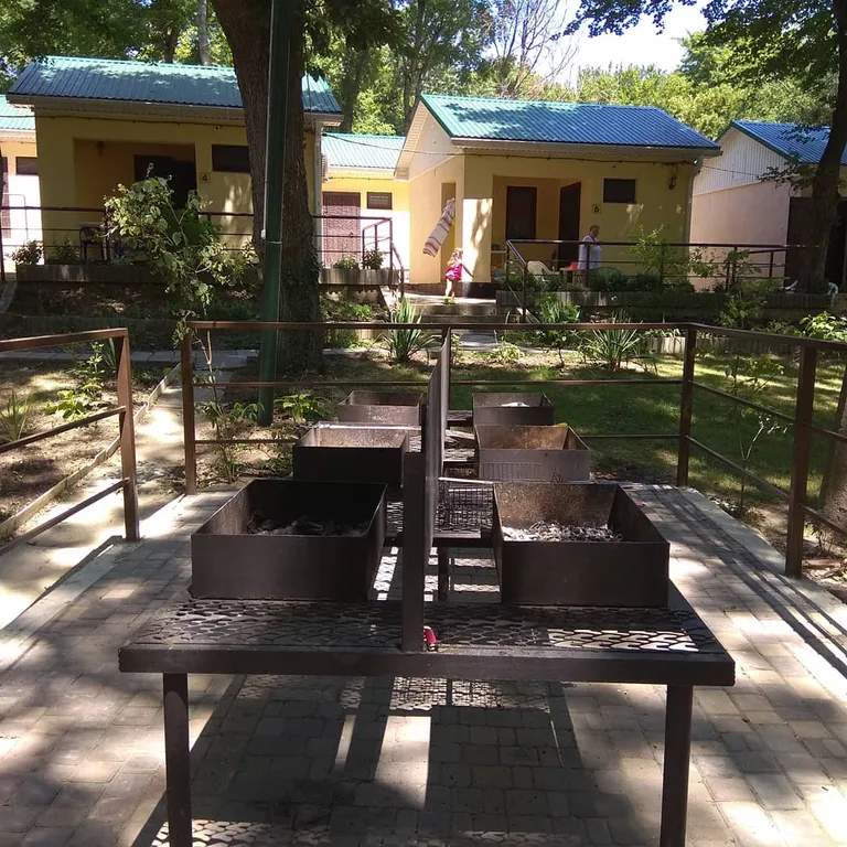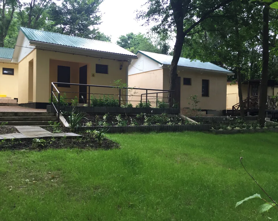 На просторной тенистой территории размером — 0,75 Га расположены отдельно стоящие коттеджи, одноэтажные корпуса и 3-х этажный корпус для проживания отдыхающих. Для организации питания и развлечения наших гостей мы позаботились и построили две летних кухни, мангальную зону,