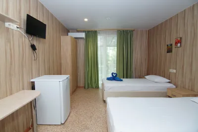 В номере стойкий запах сырости , который невозможно проветрить, в ванной комнате очень тесно, не работает розетка, не уходит вода в душе. В описании написано что есть собственный пляж 600 метров до моря это не так, зато есть платный 350 р. С человека, до бесплатного 1.5 км.